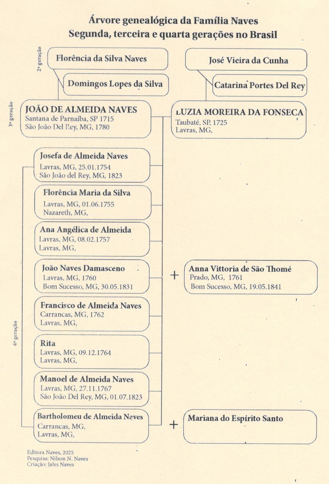 Árvore genealógica dos Naves, 2ª, 3ª e 4ª gerações no Brasil