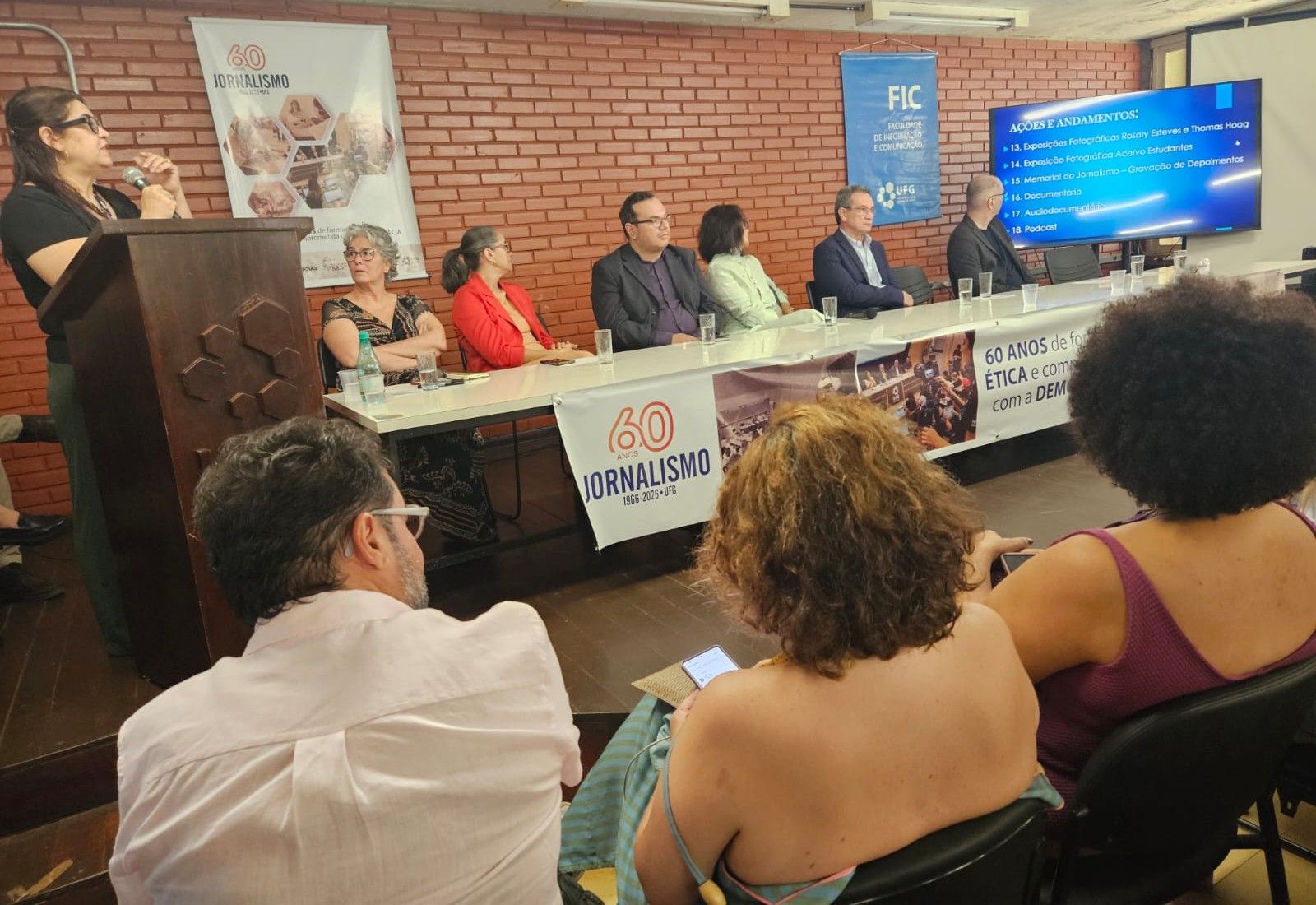 A coordenadora do Curso e do evento, professora Solange Franco, apresentou o projeto, que será desenvolvido neste ano e em 2027, para resgatar e analisar a memória cultural e histórica do Curso de Jornalismo da UFG, sua importância e o impacto social nos aspectos de formação acadêmica, profissionalização e contribuição para o desenvolvimento dos meios de comunicação em Goiás. Na iniciativa, quer a colaboração de professores, estudantes, egressos, ex-professores, servidores, entidades representativas e veículos de comunicação.